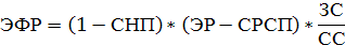 ЭФР = (1 – ставка налогообложения прибыли) * (ЭР - СРСП) * ЗС/СС Экономическая рентабельность (ЭР) активов, или, что то же, экономическая рентабельность всего капитала предприятия, т. е. суммы его собственных и заемных средств ЭР = (НРЭИ / АКТИВ) * 100.