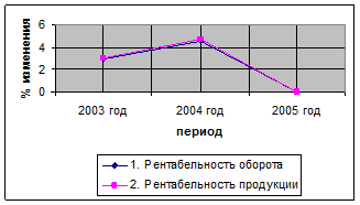 Рис.4 Изменение рентабельности оборота и рентабельности продукции на предприятии за 2003-2005 гг.