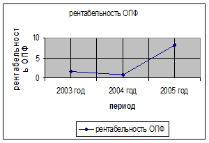Рис. 6 Изменение рентабельности основных производственных фондов за 2003-2005 гг.
