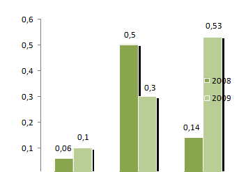 Рисунок 1. Динамика показателей финансовой устойчивости предприятия ТОО «Форпост-Караганда» за 2008–2009 г.