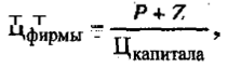 Если определяется цена фирмы (акционерного общества), которая располагает только собственным капиталом, то стоимость этого капитала может быть рассчитана и другим методом - как отношение текущего дивиденда в расчете на одну акцию (Дт) к текущей рыночной цене одной акции (Цр):
