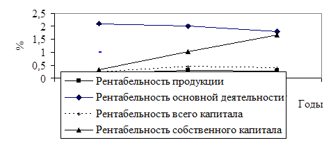 Показатель рентабельности продукции в 2002 году возрос на 0,09%, а в 2003 году незначительно снизился на 0,03% по сравнению с предыдущим годом.