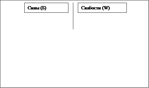В качестве основы такой системы может быть принят анализ возможностей, ресурсов и рисков, так называемыйSWOT-анализ (Strength – сила; Wetness – слабость; Opportunity – возможности; Threat – угрозы).