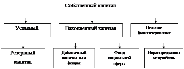 Основным источником финансирования является собственный капитал (рис. 1). В его состав входят уставный капитал, накопленный капитал (резервный и добавленный капиталы, нераспределенная прибыль) и прочие поступления (целевое финансирование, благотворительные пожертвования и др.).