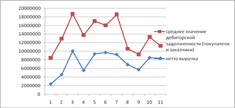 Динамика средней дебиторской задолженности и выручки по оплате представлена на Графике 2.1.