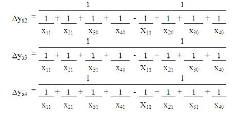 Δyx1 = (x11 – x10) (x20 + х30 + х40 + х50) х60