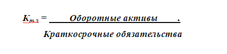 Он определяется как отношение всех оборотных (текущих) активов к величине краткосрочных обязательств: