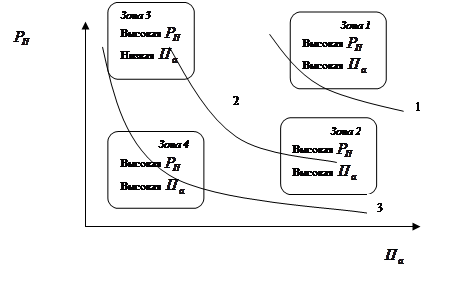 Идеальная позиция рентабельности предприятия с точки зрения экономической рентабельности тяготеет к зоне 1. Однако в условиях конкурентного рынка обеспечить одновременно высокую рентабельность продукции, работ, услуг и производительность активов достаточно трудно.