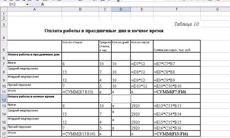 Исходные данные для расчета таблицы 10 даны в таблице 2. Формулы расчетов на рис 4.