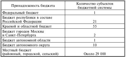 - местные бюджеты (около 29 тысяч местных бюджетов: городских, районных, поселковых, сельских).