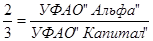 Определяем прирост УФ АО «Альфа» после реорганизации (2/3)-пропорции обмена