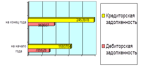 Для сравнения сумм дебиторской и кредиторской задолженностей и темпов их роста за отчетный период используют данные бухгалтерского баланса, представленные в графической интерпретации, рисунок 2.9.