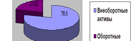 В ходе анализа показателей структурной динамики установлено, что на конец отчетного периода 78,5 % составляют внеоборотные активы и 21,5 % - текущие активы.