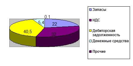 Прирост оборотных активов обусловлен увеличением материально-производственных запасов, дебиторской задолженности, краткосрочных финансовых вложений и налога на добавленную стоимость. Наибольшее приращение оборотных средств обеспечено увеличением запасов материальных ресурсов, сумма которых возросла на 217906 тыс. руб., или 71,47 % и дебиторской задолженности, удельный вес которой составил на конец периода 8,72% доли всего имущества.