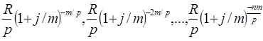Если платежи производятся не один, а m раз в году, то размер платежа равен R/p. Члены ренты образуют ряд
