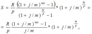 Расчет наращенной суммы (S) p-срочной ренты производится по формуле:
