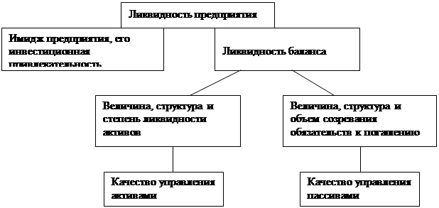 Ликвидность предприятия – это более общее понятие , чем ликвидность баланса. Ликвидность баланса предполагает изыскание платежных средств только за счет внутренних источников (реализации активов). Но предприятие может привлечь заемные средства со стороны, если у него имеется соответствующий имидж в деловом мире и достаточно высокий уровень инвестиционной привлекательности.