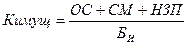 Для характеристики структуры имущества предприятия используют коэффициент имущества производственного назначения, который показывает долю реальных активов, определяющих производственные возможности предприятия, и определяется по формуле: