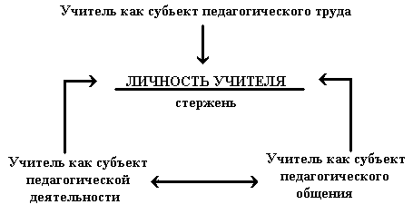 Обобщая взгляды Н.В. Кузьминой и Л.М. Митиной, А.К. Маркова говорит, что педагогическая деятельность, педагогическое общение и личность – три основные стороны труда учителя. «Личность учителя является стержневым фактором труда учителя, определяющим его позицию в педагогической деятельности и педагогическом общении»[ ]. В ходе труда учителя три его стороны вступают в сложные диалектические отношения друг с другом, когда каждая из них является то предпосылкой, то средством, то результатом развития другой. «Несколько упрощая, можно сказать, что педагогическая деятельность – это «технология» труда учителя, педагогическое общение – климат и атмосфера этого труда, а личность – ценностные ориентации, идеалы, внутренние смыслы работы учителя»[ ].