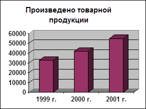 2. Произведено товарной продукции, тыс. руб. | 32691 | 42079 | 55022 |