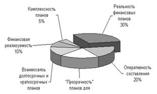 Отметим еще две проблемы — реализуемость планов и их комплексность. Под реализуемостью планов понимается их выполнимость с точки зрения обеспечения необходимыми финансовыми и материальными ресурсами, отсутствие дефицитов. Практика работы российских предприятий показывает, что очень часто принимаются к исполнению финансовые планы с дефицитом до 30-60%. Комментарии тут излишни. Комплексность планов означает, что помимо любимого всеми сотрудниками финансовых отделов плана по доходам и расходам, необходимы ещё реальные планы по прибылям и убыткам, изменению задолженности, плановый баланс. Все эти планы должны формироваться в виде, удобном для руководителей. Кроме того, целесообразно использовать инструменты факторного анализа, чтобы оценить возможные варианты развития событий при изменении ключевых плановых показателей (выручка, цена, стоимость сырья и т.д.)