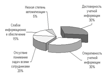 Ключевыми проблемами в области управленческого учета являются низкая достоверность и оперативность получаемых данных: каждый финансовый директор или главный бухгалтер хочет иметь оперативную информацию по себестоимости и прибыли, но то, что есть, их не удовлетворяет. Эти проблемы обусловлены различными причинами: это и недостаточная оперативность получения первичных учетных документов, территориальная удаленность подразделений предприятия, проблемы со связью, несоответствие системы аналитического учета задачам управления, нехватка человеческих и материальных ресурсов и др.