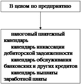 Конкретный перечень видов платежных календарей устанавливается предприятием самостоятельно с учетом специфики его деятельности и требований эффективности управления денежным оборотом.