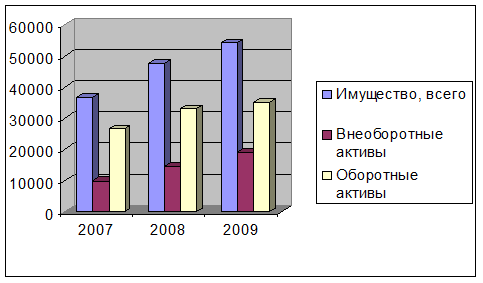 Рисунок 2.1 – Динамика имущества ЗАО "Железобетонспецстрой" в 2007 – 2009 гг.
