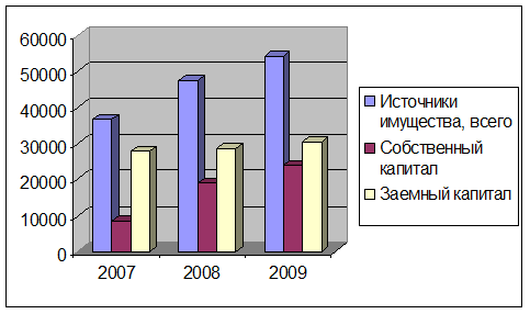 Рисунок 2.2 – Динамика источников имущества ЗАО "Железобетонспецстрой" в 2007 – 2009 гг.