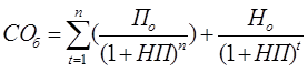П0 — сумма процента, выплачиваемая в каждом периоде (представляющая собой произведение ее номинала на объявленную ставку процента);
