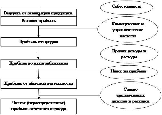 Чистая прибыль (убыток) отчетного периода в форме № 2 определяется путем прибавлении к прибыли (убытку) до налогообложения отложенных налоговых актинов и вычитания отложенных налоговых обязательств, текущего налога на прибыль, а также штрафных санкций и пени. При наличии погашенных отложенных налоговых активов и обязательств по выбывшим объектам их учета первые из них вычитаются, а вторые прибавляются к прибыли (убытку) до налогообложения при определении чистой прибыли (убытка) отчетного периода. Схему формирования чистой прибыли можно представить следующим образом (рис. 1.2).