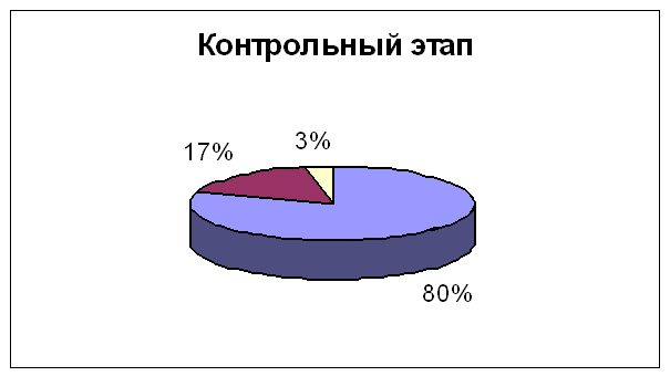 На низком уровне детско-родительских отношений осталась одна семья из двадцати; 14 (70%) семей перешло на высокий уровень детско-родительских от-ношений; 5 (25%) семей - на средний уровень (сравнительный анализ данных кон- статирующего и контрольного этапов эксперимента отображены в диаграмме 3,4).