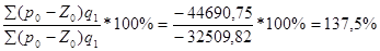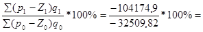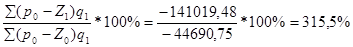 ∆себестоимости = ∑(p0 – Z1)q1 – ∑(p0 – Z0)q1 = – 141019,48 + 44690,75 = –96328,73 тыс.руб.