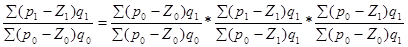 ∆цен = ∑(p1 – Z1)q1 – ∑(p0 – Z1)q1 = – 104174,9 + 141019,48 = 36844,58 тыс.руб.