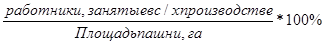 В данной таблице произвели расчет показателя трудоспособности 100 га с/х угодий и 100 га пашни. Эти показатели рассчитываются: