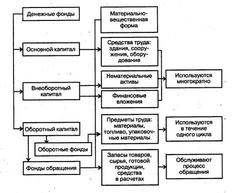 Денежные фонды представлены тремя видами капитала: основным, внеоборотным и оборотным. В свою очередь, каждый из них имеет свои элементы, выраженные в материально-вещественной форме.