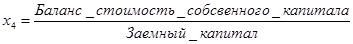 Х4 – отношение рыночной стоимости собственного капитала к общей сумме заемного капитала;