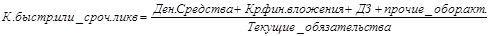 2) коэффициент быстрой или срочной ликвидности: