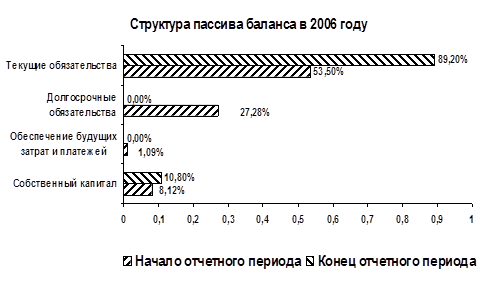 Для наглядности структуры и динамики пассивов баланса за 2006 год построим диаграммы по результатам, записанным в таблицах приложений А, Ж и К: