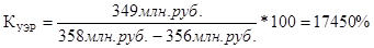 Коэффициент (КУЭР) показывает, какими в среднем темпами может развиваться предприятие в дальнейшем, не меняя уже сложившихся соотношений между различными источниками финансирования, фондоотдачей, рентабельностью производства, дивидендной политикой и т.п.
