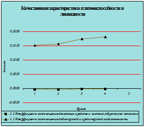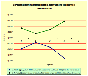 На рис. 2.8 мы наблюдаем, отрицательные показатели коэффициентов, что свидетельствует о не способности предприятия конвертировать запасы в деньги и покрывать краткосрочные обязательства.