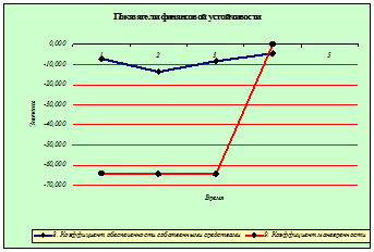 На графике 2.6.11 мы видим, что коэффициент финансовой зависимости к концу 2008 года имеет положительные показатели, а коэффициент долгосрочной финансовой независимости к концу 2008 года имеет отрицательный показатель отклонений от нормы, что свидетельствует о не стабильной финансовой устойчивости.