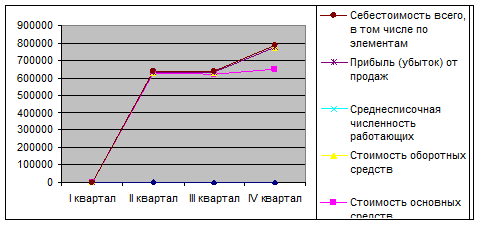 Графическая интерпретация динамики абсолютных показателей выручки предприятия, стоимости основных средств, стоимости оборотных средств, себестоимости и прибыли от продаж приведена на рис. 2.1.
