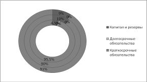 Анализируя структуру пассивной части видно, что основным источником финансирования является заемный капитал, что повышает риски компании, но дает приемущество при начисление налога, снижая его на процент выплачиваемы за привлечение заемного капитала, и так как у организации вполне устойчивые денежные потоки, она в полне может привлекать заемное финансирование.