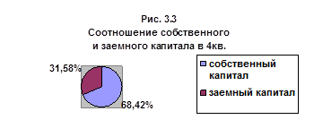 В 4-м квартале предприятие частично рассчиталось с кредитором, сумма заемного капитала составила 1200 тыс.руб., и за счет фонда валовых накоплений увеличили сумму собственного капитала на 600 тыс.руб. (2600) Соотношение – рис. 3.3