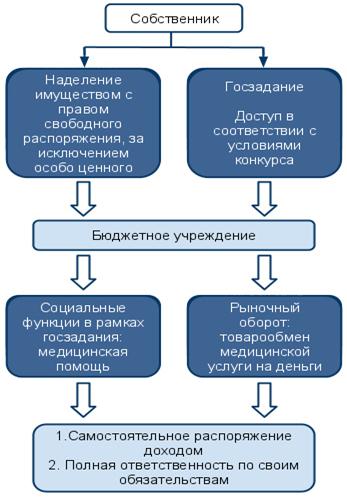 Бюджетные учреждения получат от собственника имущество с правом его распоряжения за исключением особо ценного, отнесение к которому находится в усмотрении собственника, а также получат возможность участвовать на общих основаниях в рамках конкурса на получение государственного задания для реализации социальной функции государства по предоставлению медицинской помощи.
