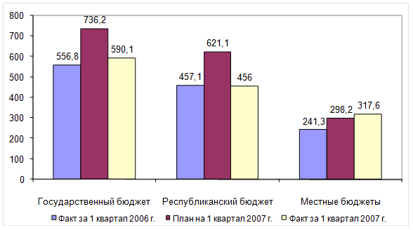 Рисунок 2 – Исполнение государственного бюджета за 1 квартал 2007 года [10]
