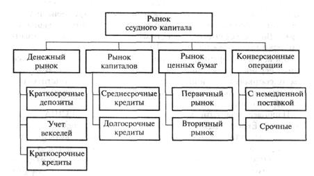 Рынок ссудных капиталов как экономическая категория выражает социально-экономические отношения, которые определяются законами рыночного хозяйствования, формирующими в итоге его сущность, т.е. связи и отношения как внутри самого рынка, так и во взаимодействии с другими экономическими категориями. Современная структура рынка ссудных капиталов характеризуется двумя основными признаками: временным и функционально-институциональным.