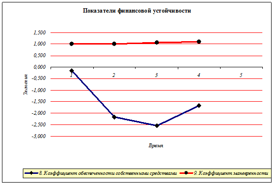 1. Коэффициент автономии должен быть более 0,5, а в данном случае он отрицательный и в динамике постепенно понижаться, повышаясь только в четвертом периоде, это показывает что активы предприятия сформированы не за счет собственного капитала, а за счет заемных средств