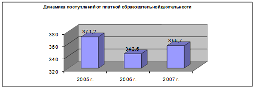 Как показывает диаграмма 3.2. динамика поступлений от платной образовательной деятельности весьма нестабильна и имеет тенденцию к снижению. Также снижается и доля доходов от платной образовательной деятельности в общей структуре доходов от предпринимательской деятельности ГОУ «Промышленно-экономический колледж», в 2005 г
